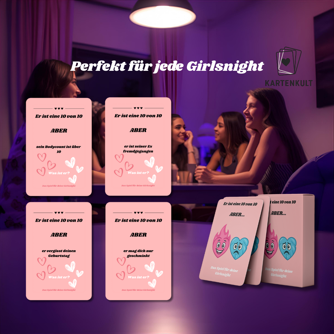 Die Karte wird laut vorgelesen: „Er ist eine 10/10, aber …“ - Zusammen entscheiden: